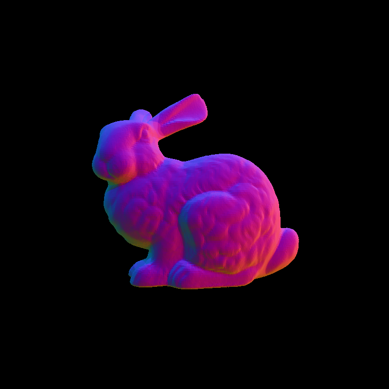 Now, we have a normal map, nice but what is it useful for ? One use case example is to render new images with lights at positions not in the initial dataset of 2D images: we were using \(\vec{l}\) to calculate \(\vec{n}\) from \(i\), now that we have \(\vec{n}\) we can calculate \(i\) for any \(\vec{l}\). One would have to address the problem of cast shadows though.
