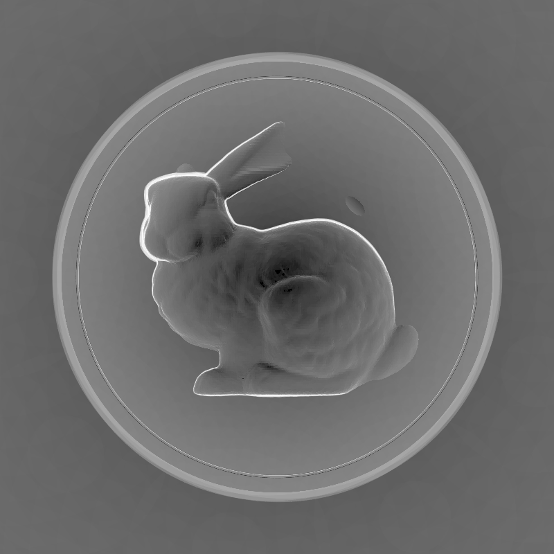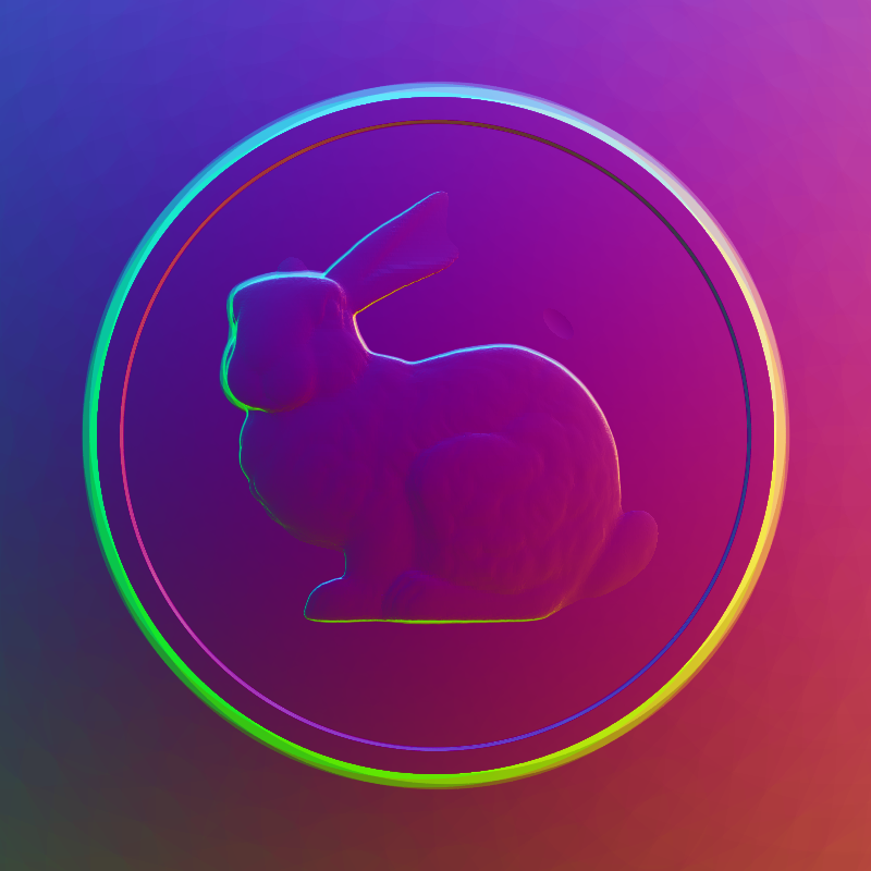 Although these examples illustrate how the photometric stereo technique can indeed efficiently reveal small details and defects, their synthetic nature limits the evaluation of its actual efficiency. The light and texture models are simplification of reality, the coin surface is way too perfect, and the mesh of the bunny shows up if looked at carefully. I wish I could show you the tests I did with real photographs of metal, paper and plastic objects. They are really impressive most of the time and I can assure that's indeed a very interesting technique. As I can't share these results here you will have to try by yourself!